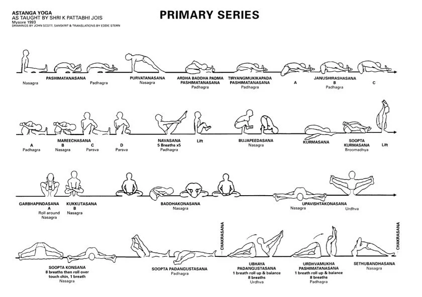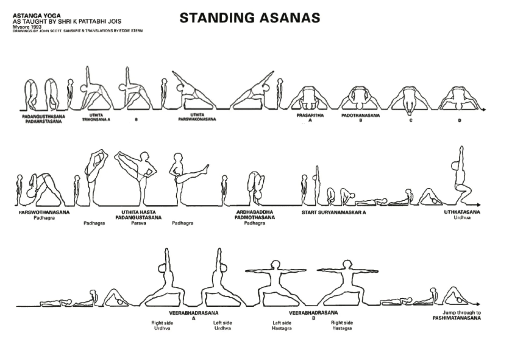 Pattabhi Jois (1915-2009) a student of Krishnamacharya (1888-1989) also Vedantic Sanskrit Scholar, brought 'Ashtanga Vinyasa Yoga' to the householders and western world. He created several series of Ashtanga Vinyasa yoga, which deeply embodies the teachings of the sutras of Patanjali. These teachings were based in Mysore, Southern India.