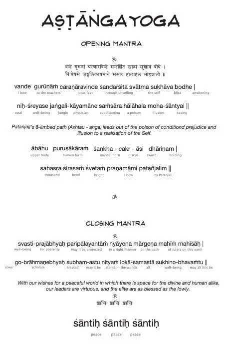 They come from Patañjali - (Fifth century AD) was the collector/ compiler of ʻThe Yoga Sutrasʼ. The sutras are threads of knowledge into the philosophy and science of yoga. “Vinyāsa” often translates to a breath movement system, or to “place a special place” on an action. This is where we find the “flowing” style movement where breath and movement are always combined. There is never one without the other whilst doing Ashtanga Vinyāsa Yoga.