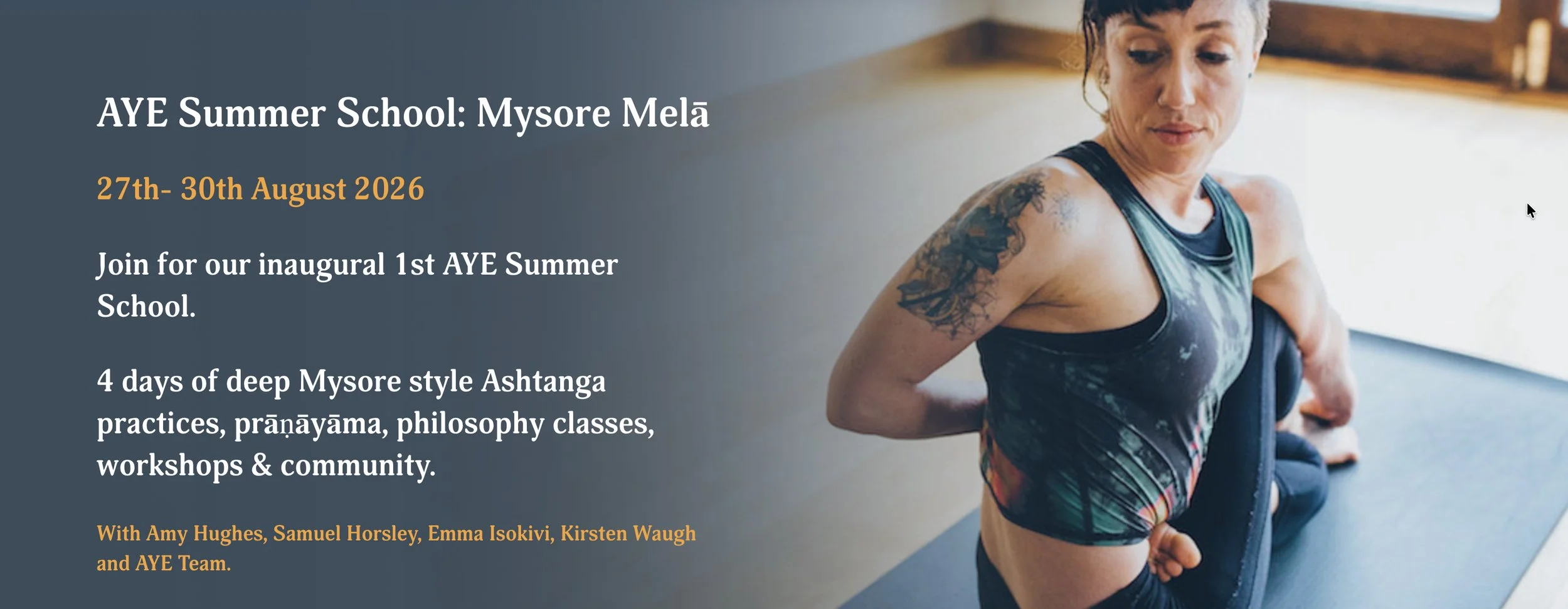 2 Mysore time-slots (06:30 & 08:00) + prāņāyāma & talk on the Tuesday 2nd.